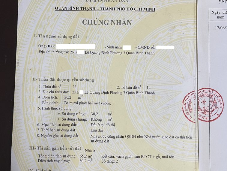 – 3m7 x 11m – DT công nhận 30,2m2 .
