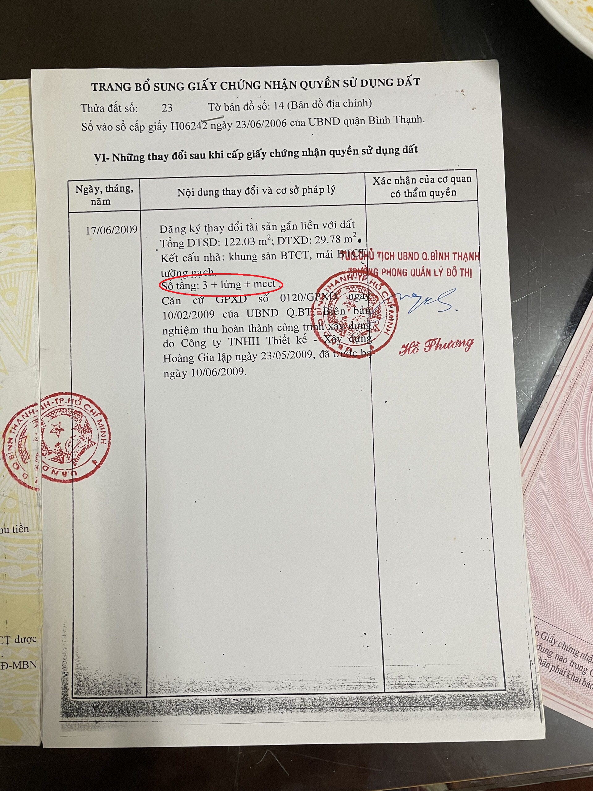 – Kết cấu : trệt , 4 sàn BTCT – Tổng DTXD : 122m2 .