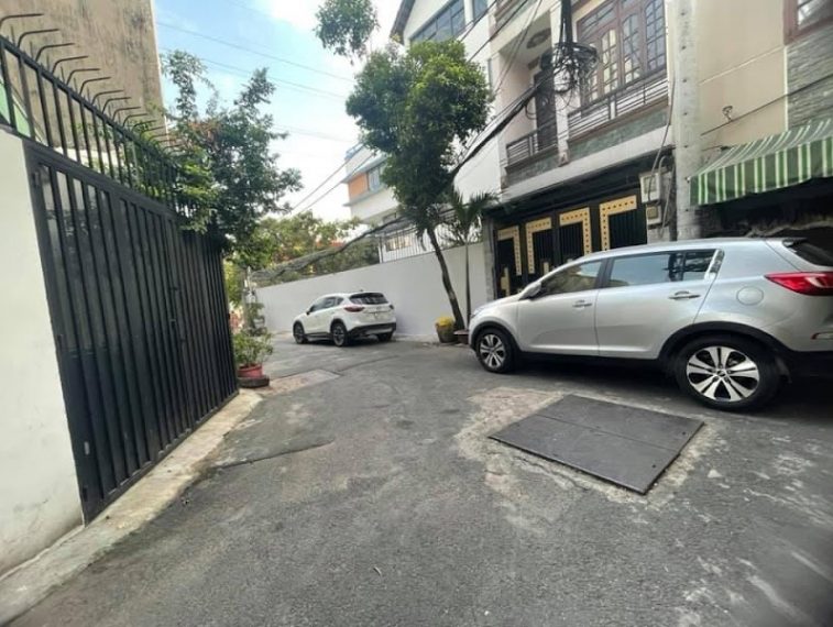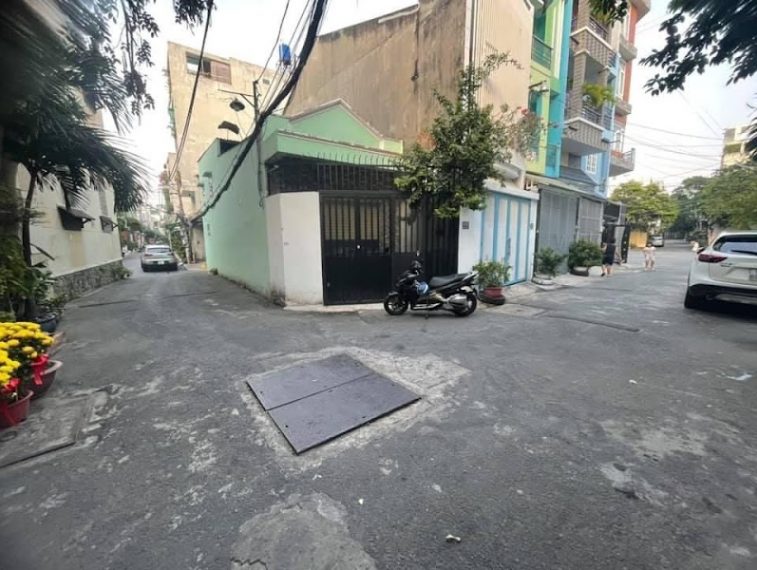 – Nhà lô góc, 2 xe hơi tránh nhau. Hẻm thông khắp nẻo.